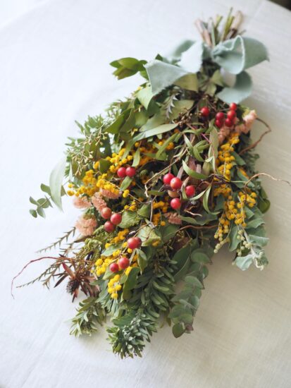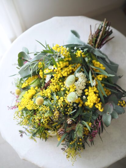 ミモザやユーカリをメインに、枝や変わったリーフなど
